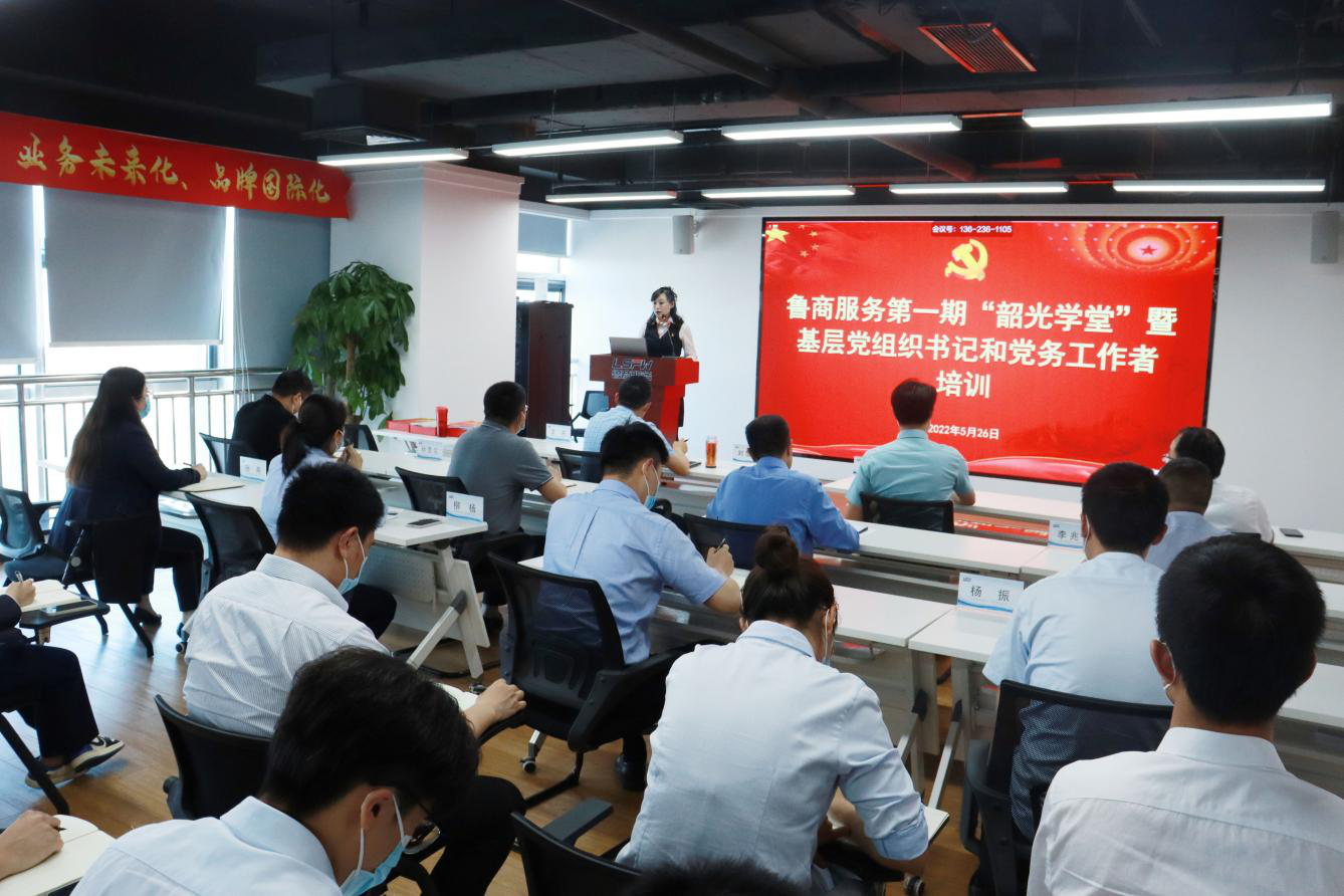鲁商服务各党支部书记、党务工作者及部分党员发展对象现场参加培训,其他直属单位党务工作者线上参训。