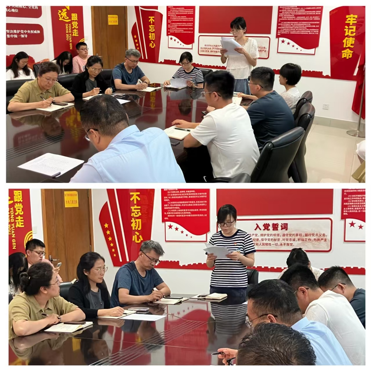 第五党支部组织党员干部重读入党志愿书,重温“对党忠诚、积极工作”的誓言,回望递交志愿书时对党的向往,审视自己是否始终以党员标准严格要求。党员干部在过往与现在的对照中,强化了“第一身份是共产党员、第一职责是为党工作”的意识,凝聚起创新发展的奋进力量。