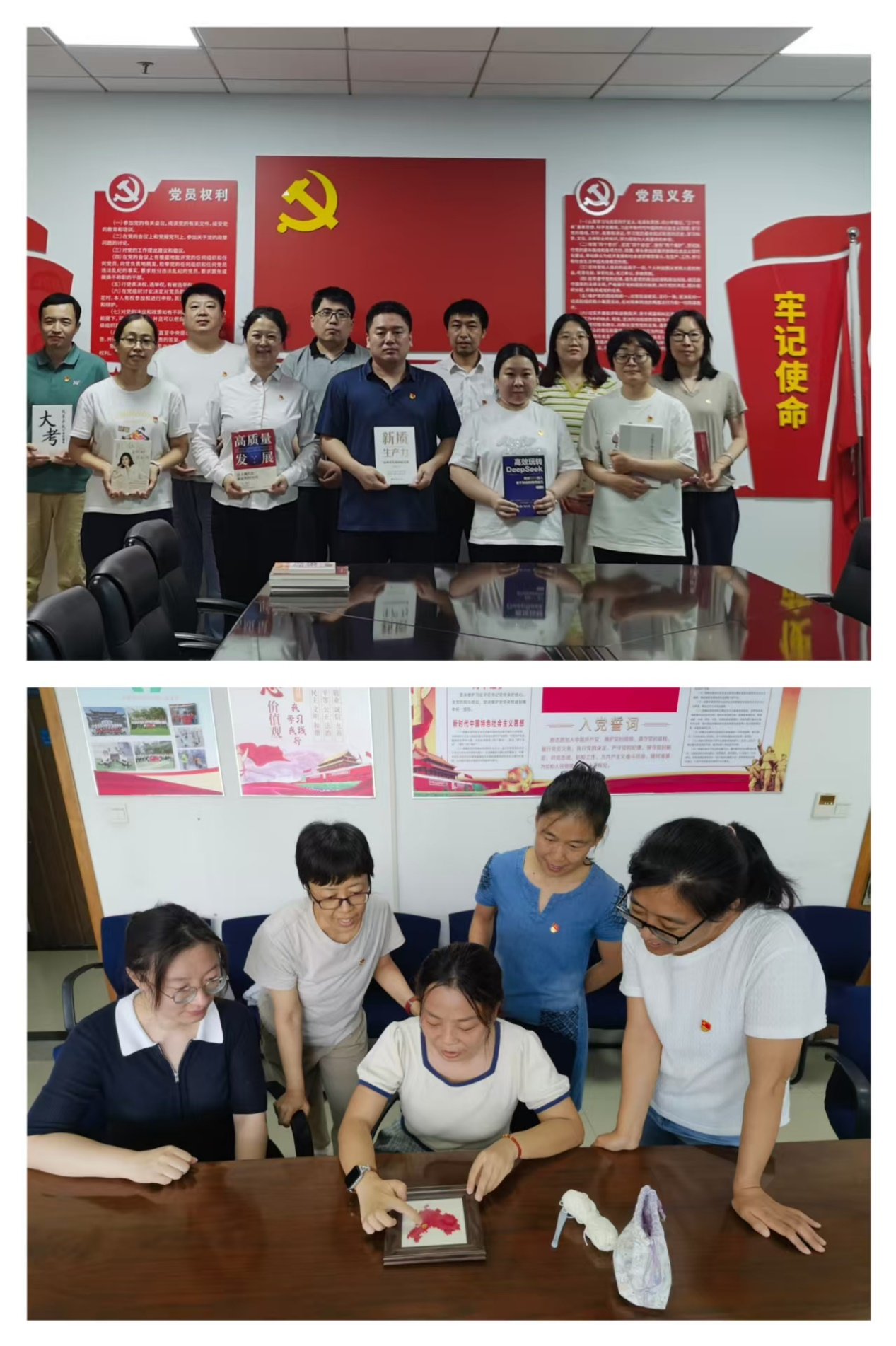 为深化党员身份意识、强化党性修养,第三党支部、第七党支部开展“赠送政治生日书籍”特色活动。通过赠送书籍,引导党员在阅读中回顾党的奋斗历程,从革命先辈的精神中汲取力量,将理论学习转化为服务群众、推动工作的实际行动。第三党支部支部党员还手工钩织中国地图,成为“不忘初心、牢记使命”的生动教材,使党员在仪式感、参与感中重温初心使命,擦亮忠诚干净担当的党员底色。