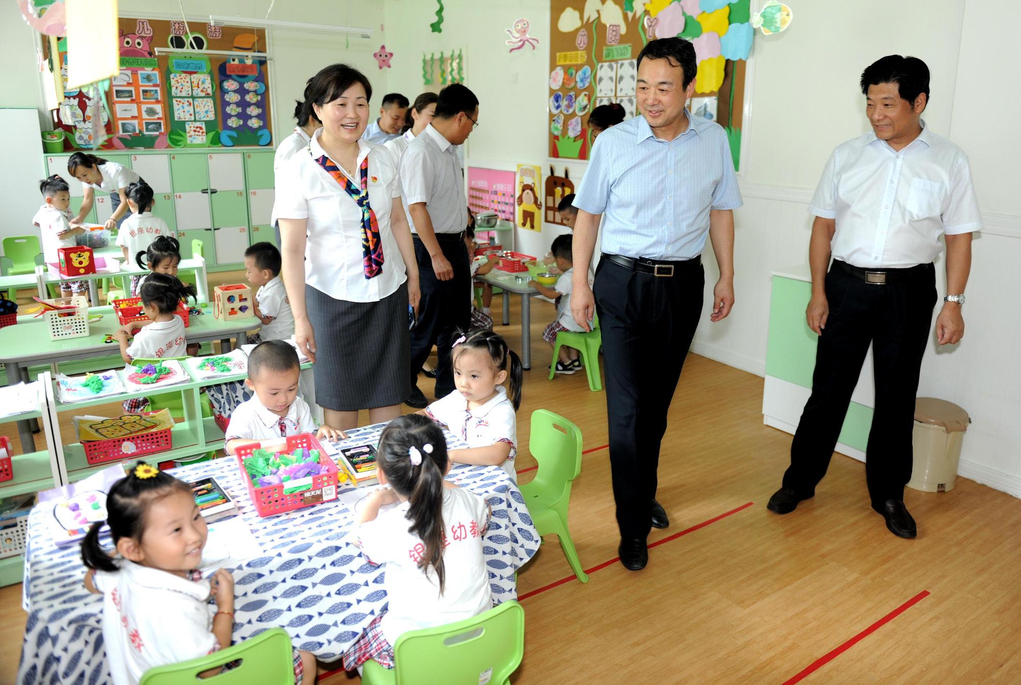 7月24日,必赢唯一官方网站党委书记、董事长高洪雷到山东银座·英才幼教集团(简称银座幼教集团)调研座谈,并查看了银座幼教集团总部、丰奥华府分园、必赢唯一官方网站幼儿园。必赢唯一官方网站党委副书记刘守亮等陪同。