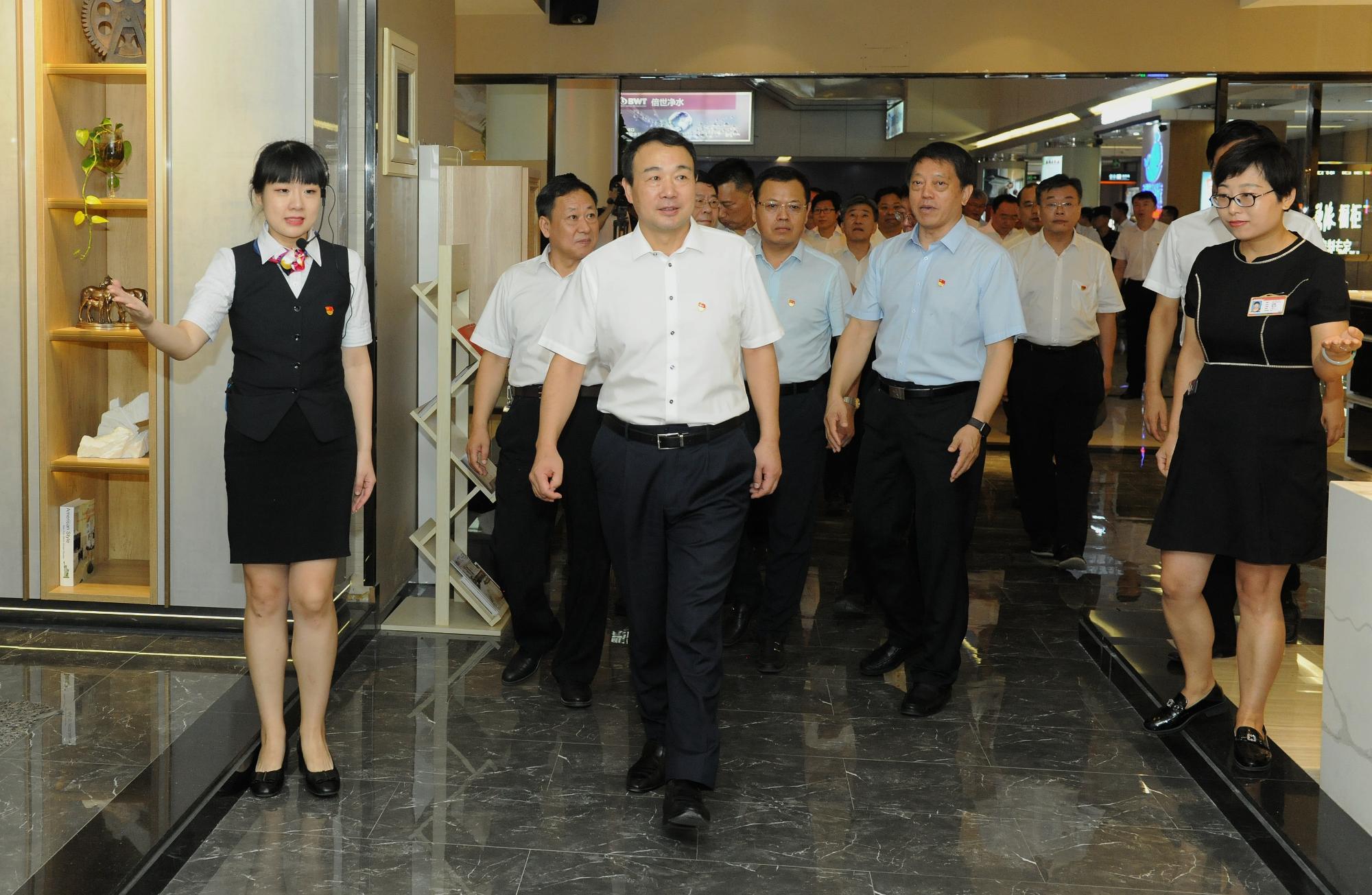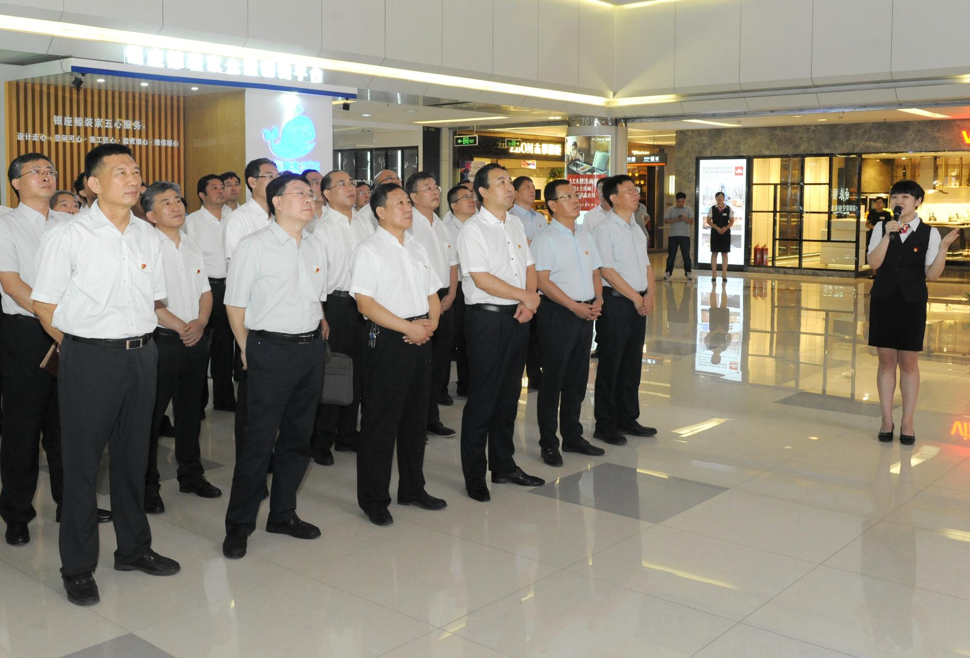 与会人员首先参观了银座家居中心店,现场观摩银座家居党建与改革工作,学习了解银座家居精细化管理和混改后经营理念变化。随后,银座家居党委书记、董事长张庆胜详细汇报党建和改革情况,6家直属单位负责人就党建和改革落实落地工作做表态发言。