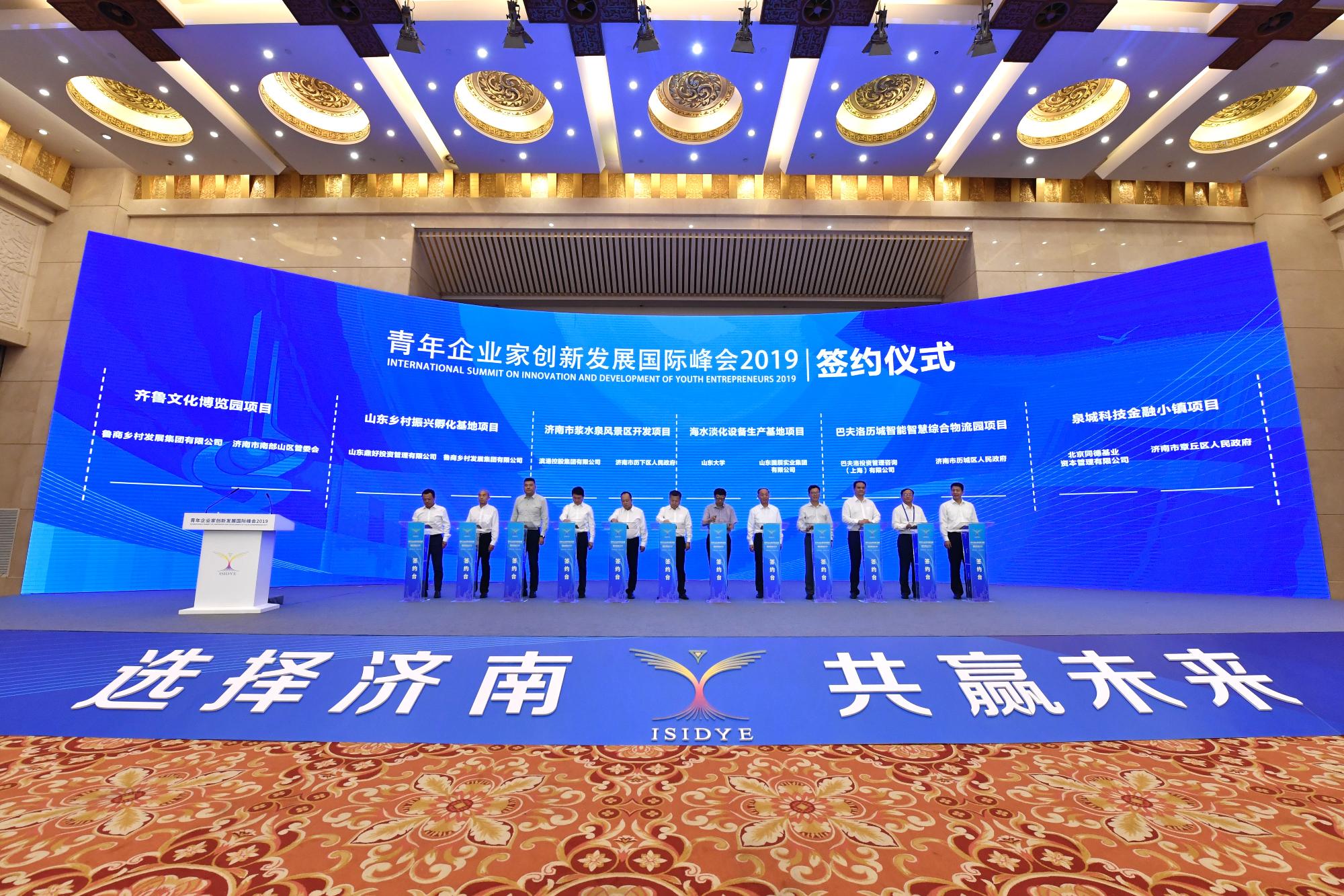 9月9日,青年企业家创新发展国际峰会2019(以下简称青企峰会)开幕式在济南举行,800余位重量级专家学者、企业家出席。会上重点推介了26个项目,省商业集团有限公司(简称必赢唯一官方网站)三个项目入选,分别为齐鲁文化博览园项目、客天下(泰山佑)国际生态旅游度假区项目和山东乡村振兴孵化基地项目。其中,齐鲁文化博览园项目和山东乡村振兴孵化基地项目现场举行签约仪式。