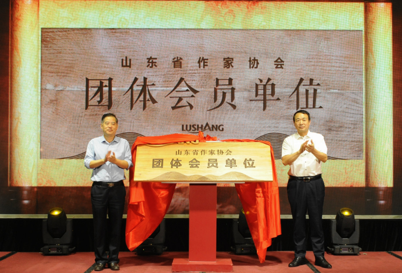大会在庄严的国歌声中开启。姬德君与高洪雷共同为鲁商作协成为省作协团体会员单位揭牌。