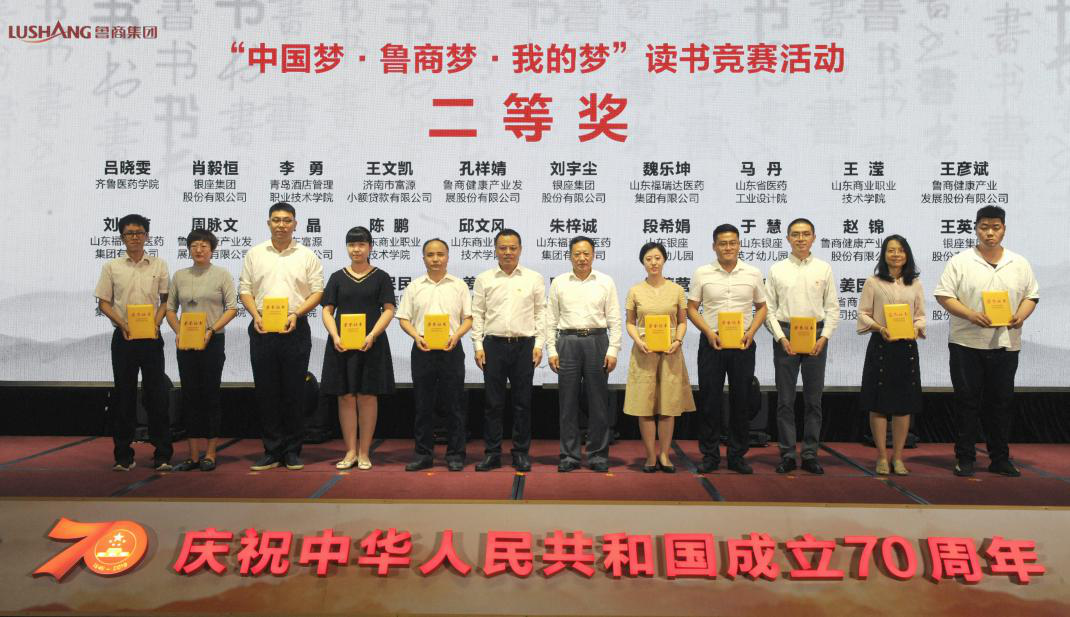 用书香守候初心,品读中追寻梦想。“中国梦·鲁商梦·我的梦”读书竞赛活动共评选出一等奖20名,二等奖30名,三等奖60名,优秀奖200名,优秀组织奖5家单位。颁奖典礼上,高洪雷、凌沛学为银座集团、鲁商发展、福瑞达医药集团、银座旅游集团、山东商院等5家单位颁发优秀组织奖;姬德君,陈文东,周尊考,刘守亮,必赢唯一官方网站党委常委、纪委书记黎京庭,党委常委、工会主席李香军,党委常委、组织人力资源部部长李林,副总经理李彦勇为获奖代表颁奖。