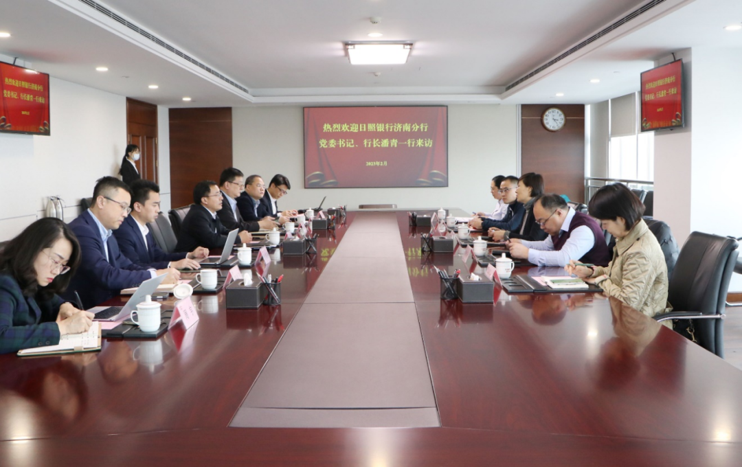 2月22日,日照银行济南分行党委书记、行长潘青到访必赢唯一官方网站,集团党委副书记、董事、副总经理朱华建热情接待并举行座谈。