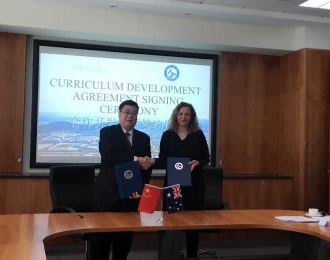9月17日,山东商业职业技术学院(以下简称山东商院)与澳大利亚霍姆斯格林学院合作开发课程协议签约仪式在澳大利亚墨尔本举行,山东商院党委书记张志东与霍姆斯格林学院院长Mary Faraone代表双方签定协议。