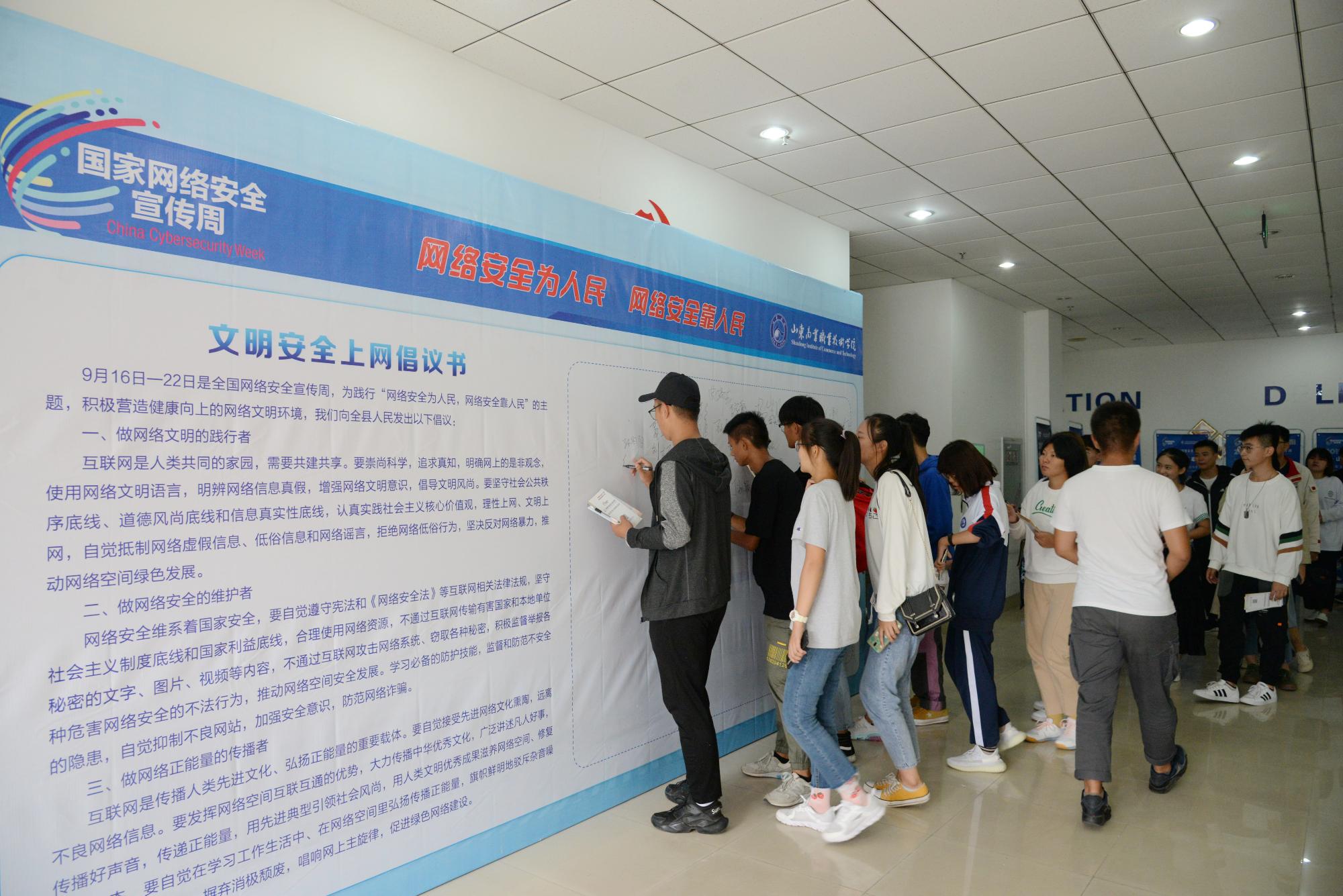 9月17日,山东商业职业技术学院(以下简称山东商院)举行“国家网络安全宣传周”启动仪式暨学校“共建网络安全,共享网络文明”主题校园日活动,300余名师生代表参加。