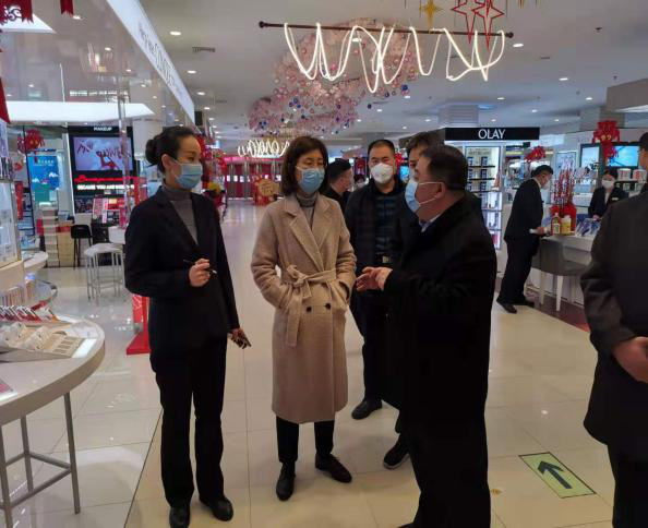 1月27日上午,济南历下区副区长刘佳等领导到银座购物广场店,现场检查指导新型冠状病毒肺炎疫情的防控应对工作。