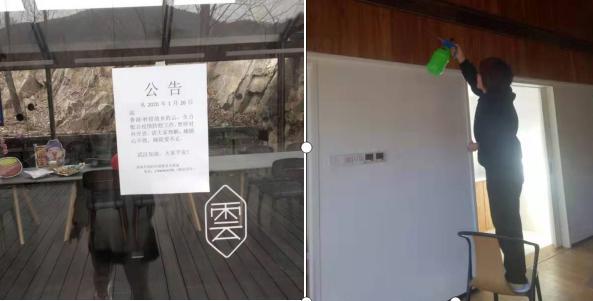 为全力配合疫情防控,泰安九女峰乡村旅游度假区项目民宿、书吧等自26日起,全面暂停对外开放,项目值守人员严格按照卫生标准,定时对各部位消毒。同时,储备好消毒用品、防护用品及感冒类药品,加强业务培训和技能提升,为恢复生产经营工作打基础、做准备。