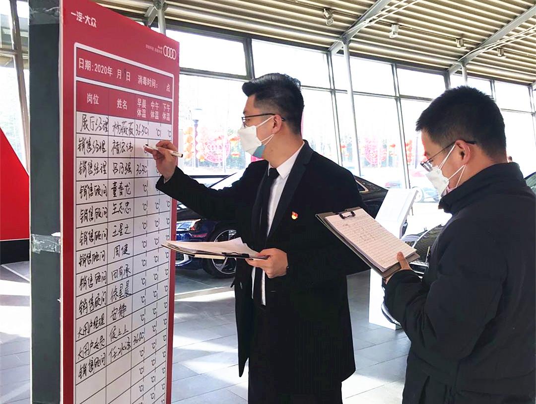 疫情防控,宣传先行。新冠肺炎疫情发生以来,银座汽车奥迪4S店市场经理刘林带头传递正能量,利用远程电话会议开展疫情防控培训,从疫情形势到防控要求,从核心业务场景到防疫日常管理,全方位、多角度进行了系统讲解,加快了一线工作人员对防控工作的认知和掌握。为给客户提供一个放心安心舒心的看车环境,他超前谋划,确定了防疫宣传物料的设计方案,每一辆展车都悬挂了“车辆已消毒”的标识牌,每一个洽谈桌都摆放了“此区域已消毒”的提示牌,还制作了工作人员体温公示牌等,有效筑起基层“防护网”,打通疫情防控宣传的“最后一米”。