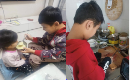 这个11岁的“男子汉”主动承担起了做饭、照顾妹妹的重担。菜刀对他来说还有些重,一不小心会切到手;炒菜掌握不好,热油溅到脸上;煎鸡蛋没控好火侯,把蛋煎生了;妹妹会哭,还不易哄……但是,这个勇敢的男孩一点点承担起来。