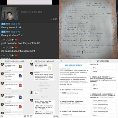 开课前,老师们利用假期时间,为长短期留学生精心准备了精彩的在线直播课及丰富的网课资源,信息技术、市场营销等资源库课程全部免费公开。20余名经验丰富的老师提供了包括生物化学、高等数学、微生物学、国际商务、经济学、中国文化、综合汉语等总计20余门课程,并制作了中英文的留学生网课反馈调查表,根据学生的反馈及时调整线上授课内容。