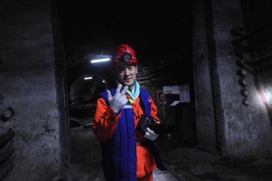 2019年10月,王晓峰在兖矿新疆硫磺沟煤矿井下采访煤矿工人