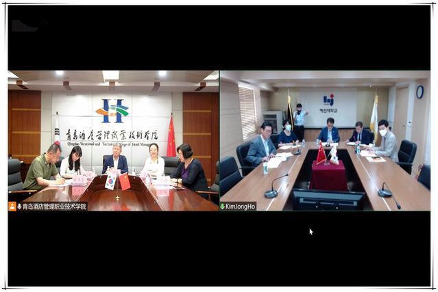 7月7日下午,青岛酒店学院与韩国彗田大学召开“云会议”,学院党委书记李达与彗田大学总长李世镇介绍了己方院校的疫情防控工作和教育教学情况,双方就世界疫情背景下两校间的交流与合作进行深入研讨。