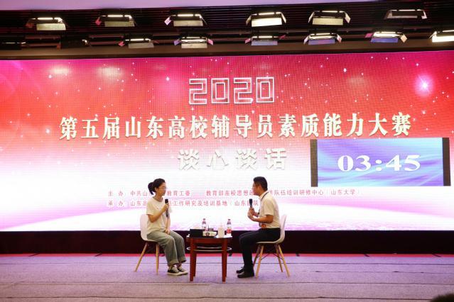 山东省第五届高校辅导员素质能力大赛两年一届,由山东省委教育工委、教育部高校辅导员培训和研修基地主办,山东高校辅导员工作研究及培训基地承办。本届大赛共分为两个阶段,第一阶段为基础知识测试和案例研讨,通过网络方式进行;第二阶段为现场比赛阶段,分为宣讲对谈、谈心谈话环节。