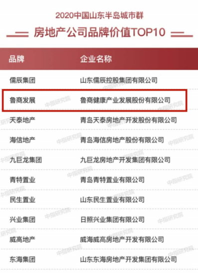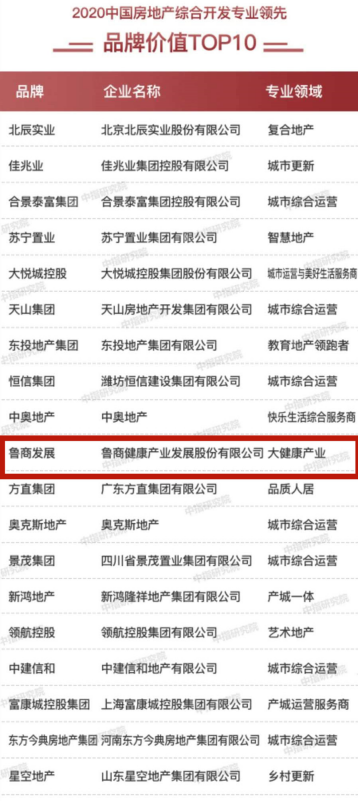 9月10日,“2020中国房地产品牌价值研究成果发布会暨第十七届中国房地产品牌发展高峰论坛”在北京召开,会上隆重发布了《2020中国房地产品牌价值研究报告》。作为深耕大健康产业的鲁商发展入围2020中国房地产综合开发专业领先品牌价值TOP10榜单,并同时荣膺2020中国山东半岛城市群行业品牌价值TOP10榜单第二位。