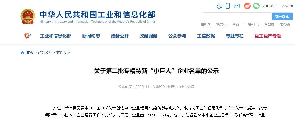 为进一步贯彻落实中办、国办《关于促进中小企业健康发展的指导意见》,根据《工业和信息化部办公厅关于开展第二批专精特新“小巨人”企业培育工作的通知》(工信厅企业函〔2020〕159号)要求,经各省级中小企业主管部门初核和推荐、行业协会限定性条件论证、专家审核等流程,近日工信部中小企业局公布了通过审核的企业名单。