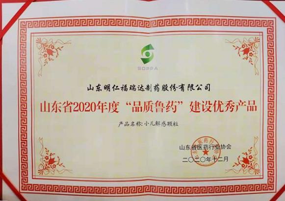 12月19日,山东省2020年度“品质鲁药”建设品牌发布会在济南召开,明仁福瑞达颈痛颗粒、小儿解感颗粒凭借卓越品质成功入选“品质鲁药”建设优秀产品目录。