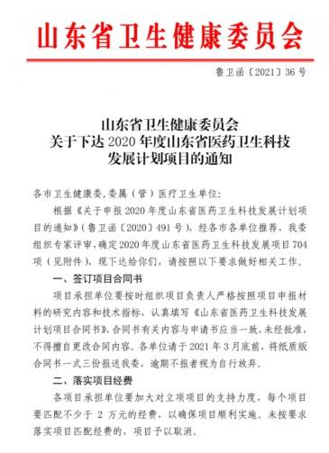 近日,从省卫生健康委员会《关于下达2020年度山东省医药卫生科技发展计划项目的通知》(鲁卫函〔2021〕36号)文件获悉,齐鲁医药学院推荐的3个项目全部获批立项,分别是何桂平老师主持的《老年慢性病患者生命质量现状及相关干预研究》,项目编号202014050730;刘悦老师主持的《老年照护人才培养方案及实施路径的探索与研究》,项目编号202014051422;李艳春老师主持的《老龄化社会背景下多学科整合性健康管理在社区居家老年照护的应用研究》,项目编号202014051423。