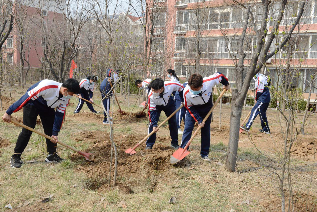 活动中,广大师生热情高涨,挥动铁锹、整陇培土、扶正树苗、浇水定根,现场一派热火朝天、干劲十足的劳动景象。经过大家的共同努力,一棵棵充满生机和希望的树木昂首挺立,煞是好看。