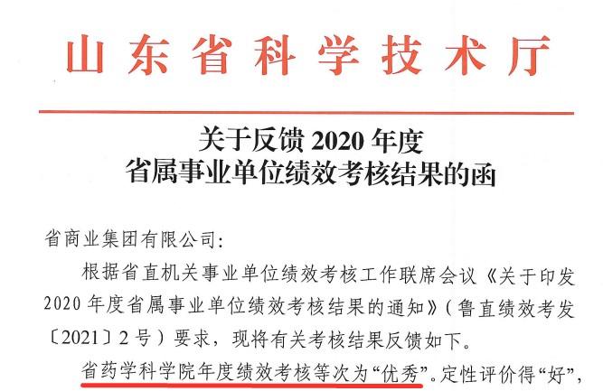 2020年度自然科学工程技术研究事业单位绩效考核体系较上年度有较大变化,省药科院根据《山东省事业单位考核委员会关于印发<2020年度省属事业单位绩效考核总体方案>的通知》(鲁事考委〔2020〕1号)《自然科学工程技术研究事业单位考核委员会2020年度绩效考核实施方案》等要求,从定性指标和定量指标两个考核体系着手总结2020年工作,汇总整理相关证明材料形成自评报告和自评表,并通过考核委员会组织的会议答辩,最终,省药科院被确定为2020年度省属事业单位绩效考核“优秀”等次。