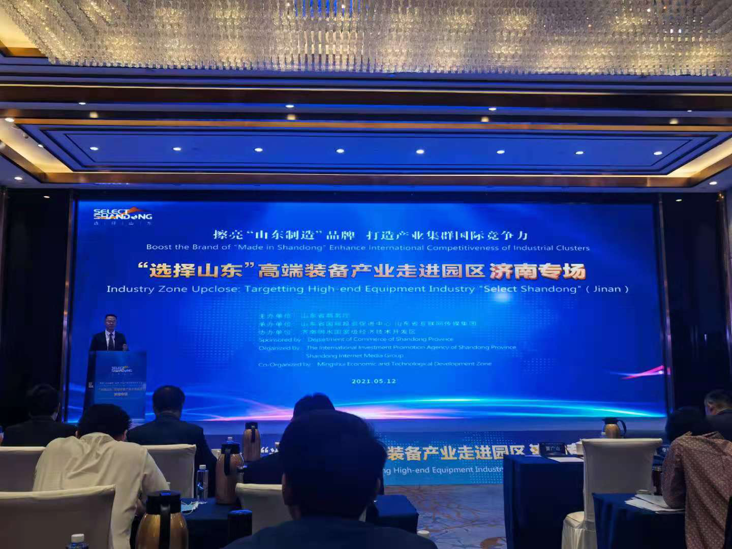 5月12日,由省商务厅主办、省国际投资促进中心、省互联网传媒集团协办的“选择山东”高端装备产业走进园区启动活动在山东大厦举行。本次活动聚焦高端装备制造领域,以“擦亮‘山东制造’品牌 打造产业集群国际竞争力”为主题,邀请境内外高端装备领域投资人、企业家、高管共计150人参会,旨在全面提升山东装备制造业水平,赋能山东经济高质量发展。