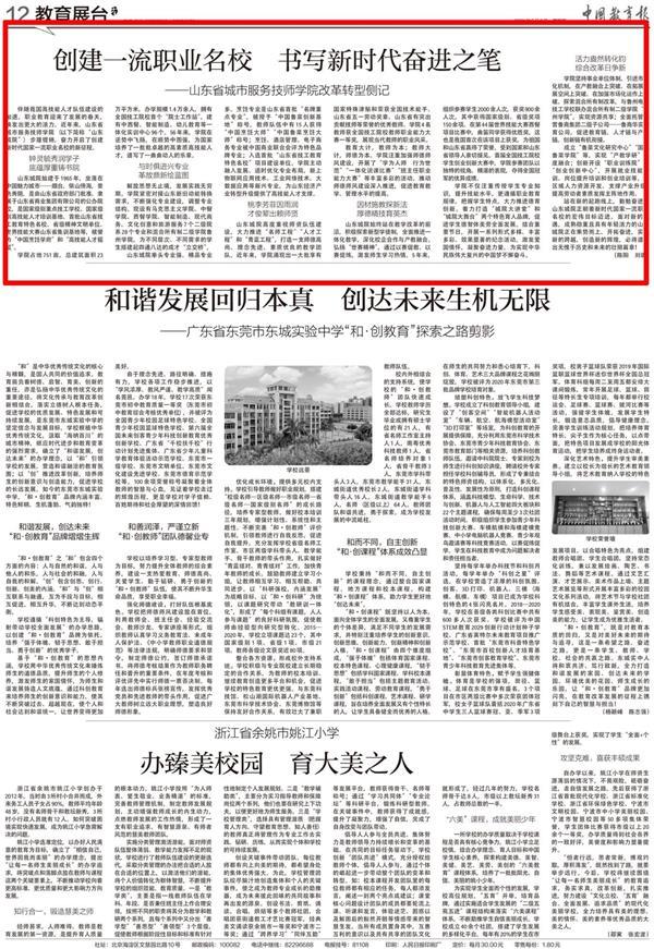 5月6日,《中国教育报》“教育展台”版块以《奋力创建国家一流职业名校 书写新时代职业教育奋进之笔——山东省城市服务技师学院改革转型侧记》为题,详细报道了省城市学院近年来改革发展取得的新成就。