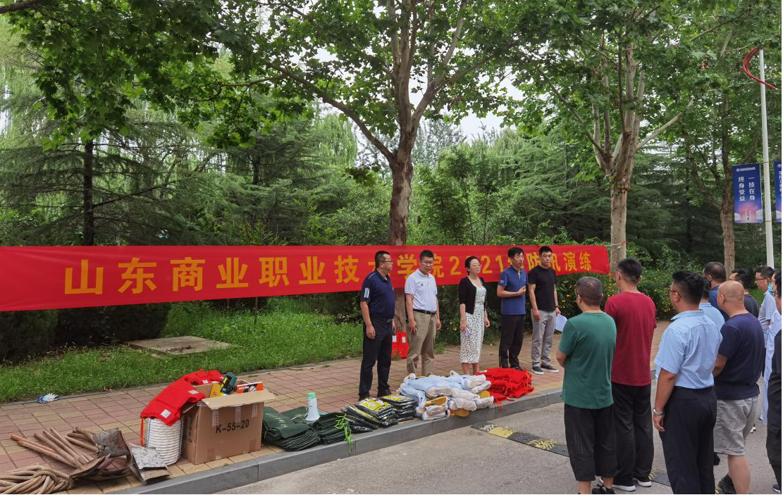 7月21日,山东商院开展防汛强险应急演练活动,提高防汛抢险的反应和应急处置能力。院长王鑫赴现场指导。