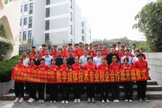 9月18日,青岛酒店学院与山东文旅传媒集团、鲁商教育控股共建的数字媒体技术专业校企合作班举行开班仪式。集团党委常委、董事、组织人力资源部部长李林,青岛酒店学院院长姜玉鹏,集团政工教科部部长、鲁商教育控股董事长张高扬出席。