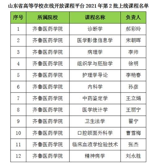 近日,省高等学校课程联盟公布《山东省高等学校在线开放课程平台2021年第2批上线课程名单》,齐鲁医药学院12门课程获批上线。
