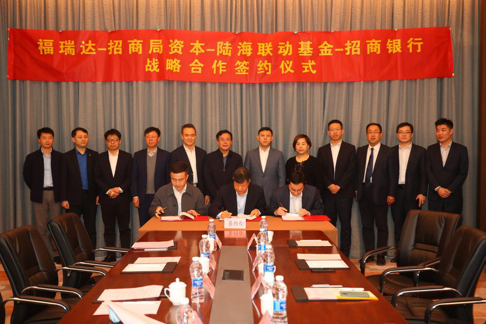 会上,福瑞达党委书记、董事长贾庆文,招商银行济南分行行长辛亮,招商局资本党总支书记、副总经理杨百千,山东港口金融控股有限公司(以下简称山东港口金控)副总经理、陆海联动基金董事长杨倩代表各方签署合作协议。