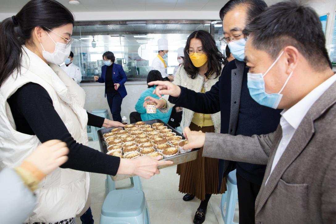 “美食计划”第一弹——酥皮泡芙制作,由中国烹饪大师、国家级裁判员、全国技术能手、西餐学院专业教师徐文建主讲。徐老师运用娴熟的课堂技巧,将酥皮泡芙的制作环节逐一分解、娓娓道来。“美食计划”第二弹——新派枣糕制作,由山东省首席技师、中国烹饪金匠奖获得者、烟台市技术能手、国宴面点大师、中餐学院教师米国红主讲。活动以线上线下相结合的形式展开,利用实时转播系统进行直播,受到教职员工的一致好评。