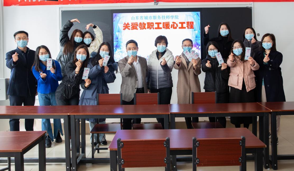 学院文化与创意系1名国务院特殊津贴专家、1名特级技师、3名全国技术能手、1名中国美容大师、4名山东省技术能手、1名美容学博士组成护理团队,向全院留守女教职员工发放美容预约卡,免费提供面部护理、艾灸仓、美甲等护理服务。