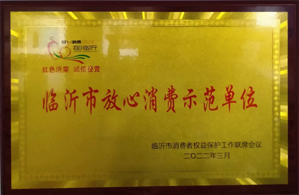 银座平邑锦泰店荣获“临沂市放心消费示范单位”荣誉称号