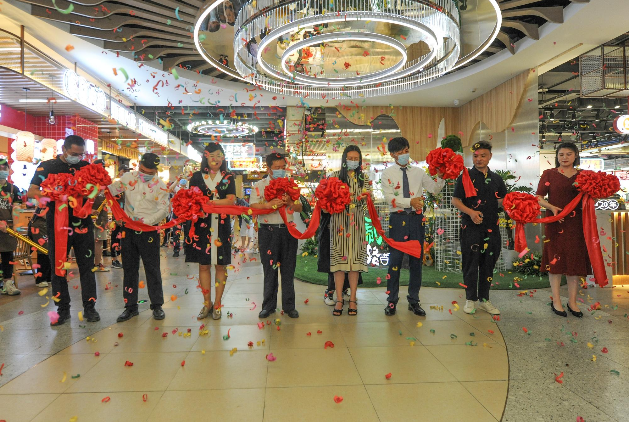 济南市槐荫区市场监管局副局长张志民、济南市槐荫区商务服务中心副主任赵群、银座集团总经理康翔、银座济南和谐广场总经理姚岚及部分商户代表共同出席了“食贰马路”美食街区的开幕式并进行了剪彩。