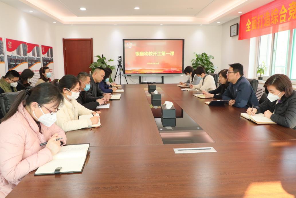 1月28日,银座幼教组织开展2023年安全生产“开工第一课”活动,筑牢安全防线,拧紧安全阀。银座幼教党总支书记、董事长袁霞出席活动。