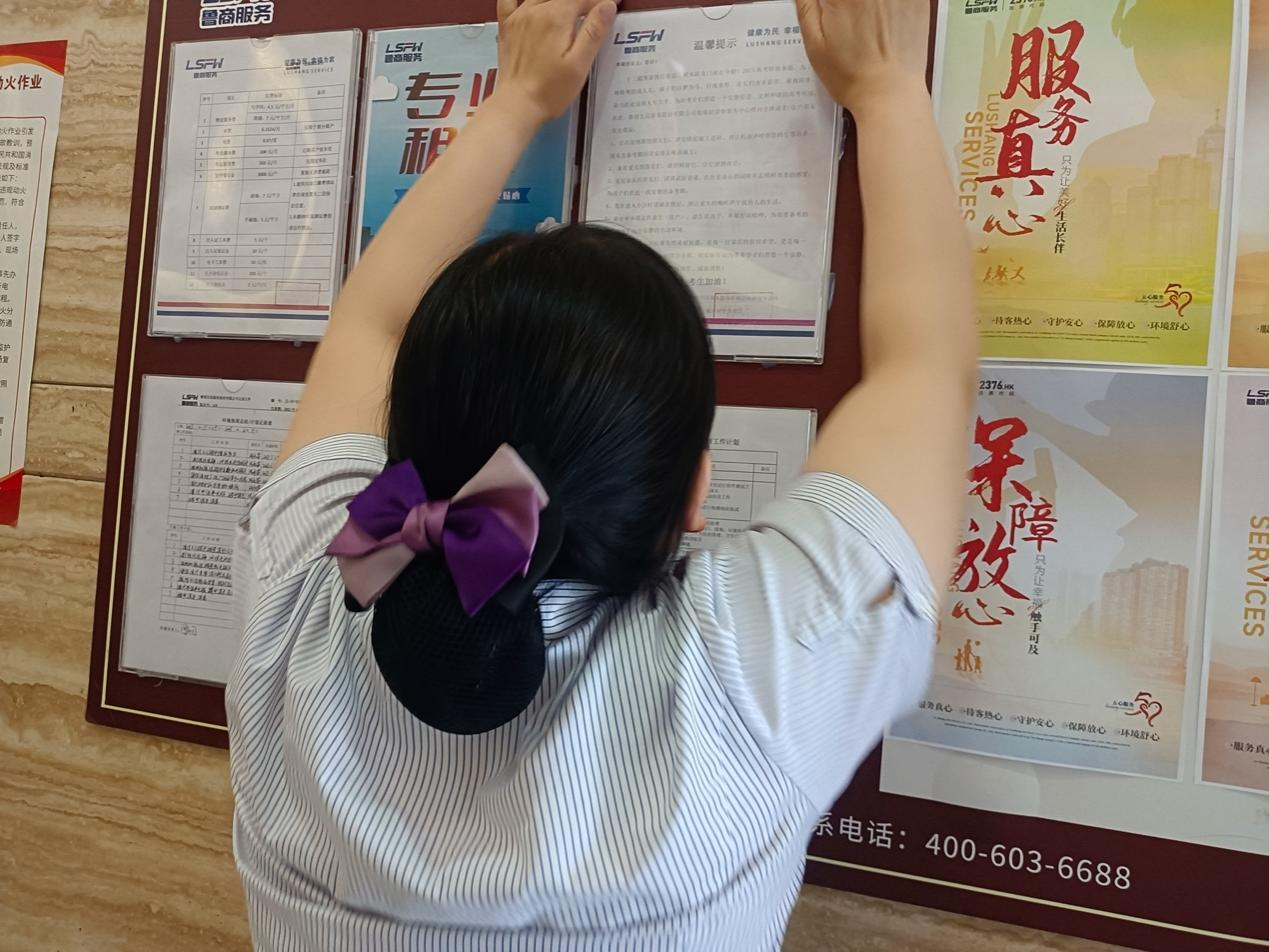 在哈尔滨凤凰广场、松江新城、铂悦公馆等项目,针对部分商铺饭店营业时间较晚等问题,工作人员积极走访店主,在饭店内醒目的地方张贴倡议书,提醒就餐的顾客减少喧哗,获得广大业主的认可。