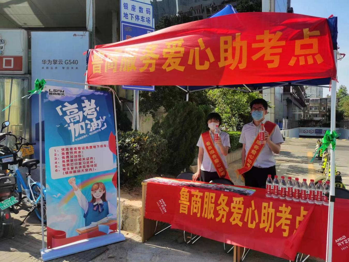 考虑到多名考生在鲁商服务银座晶都项目园区公寓居住,项目在一个月前就着手准备助考事宜。项目管家每天一早发布天气预报,提醒家长及时应对天气变化;发起静音倡议,引导业主错时装修,降低对考生的影响;在高考前24小时,项目对车位进行重新划分,为陪考家长停车创造便利条件,抽调专门服务人员在实验中学考点前搭建爱心助考点,为陪考家长及考生免费提供饮水、扇子、文具等物品。