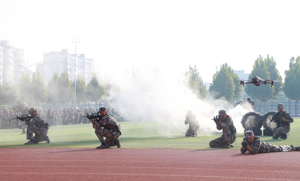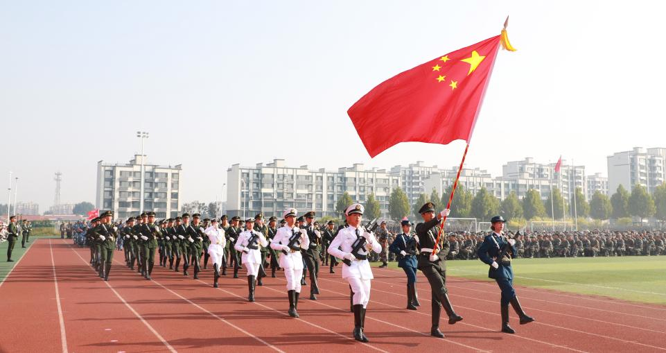 典礼在雄壮的国歌声中开始。军训汇演依次展示了女子匕首操应急棍术刺杀操综合战地救护特色表演项目进行分列式汇演,同学们精神抖擞地通过主席台接受检阅,展现出朝气蓬勃青春风貌。