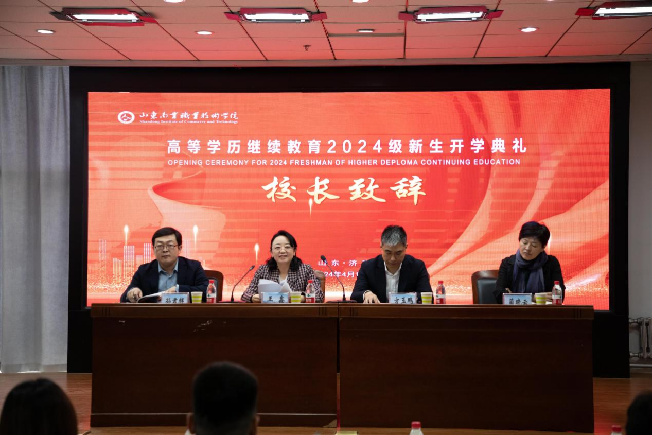 4月14日,山东商职学院以“线下+线上”形式举行高等学历继续教育2024级新生开学典礼暨开学第一课活动。