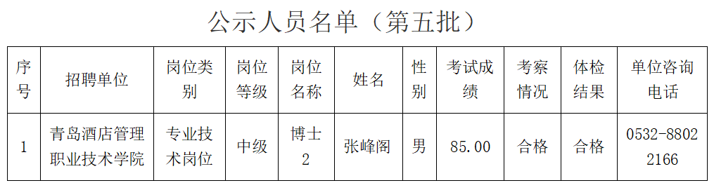 根据省委组织部、省人力资源和社会保障厅《关于印发2023年度省属事业单位公开招聘工作实施方案的通知》(鲁人社发〔2022〕23号)和省属事业单位公开招聘有关政策规定,按照岗位招聘计划,青岛酒店管理职业技术学院组织完成了公开招聘考试、考察、体检等工作,现对该单位第五批拟聘用人员进行公示。公示期为7个工作日,自2023年8月29日至2023年9月6日(不含节假日)。公示期间,如对公示人选有异议,请向必赢唯一官方网站人力资源部反映。反映问题要实事求是,并告知真实姓名及联系方式。