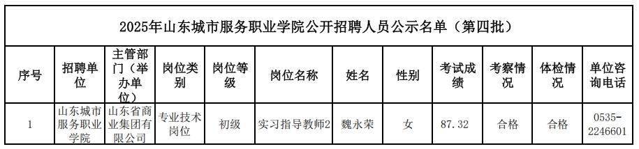 2025年山东城市服务职业学院公开招聘人员公示名单(第四批):